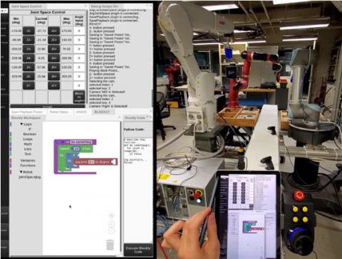 Teach pendant is the most common method to operate, control, and program industrial robots today. Despite its prevalence, current teach pendants for industrial robots are vendor specific and do not usually work with additional sensor inputs such as machine vision and force/torque sensors. There are now widely available open-source robotics software performing complex tasks, ranging from motion planning to sensor guided motion. Unfortunately, these capabilities are not readily incorporated into teach pendant operations, unless the robot vendor chooses to take the initiative.